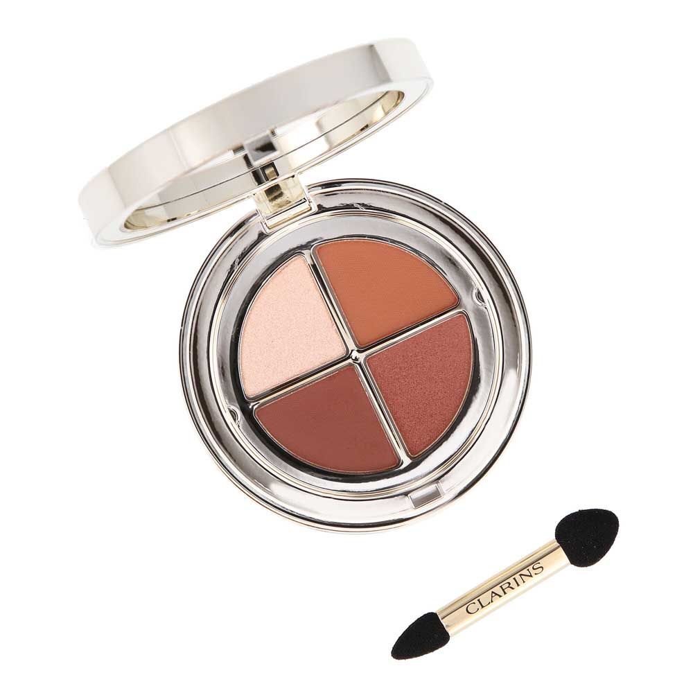 La primera sombra de ojos Clarins con base integrada. Esta paleta de 4 colores ultrapigmentados está enriquecida con polvo de bambú y vitamina E con propiedades antioxidantes y protectoras, así como de una base que favorece la fijación y el aspecto liso de la textura durante 12 h.