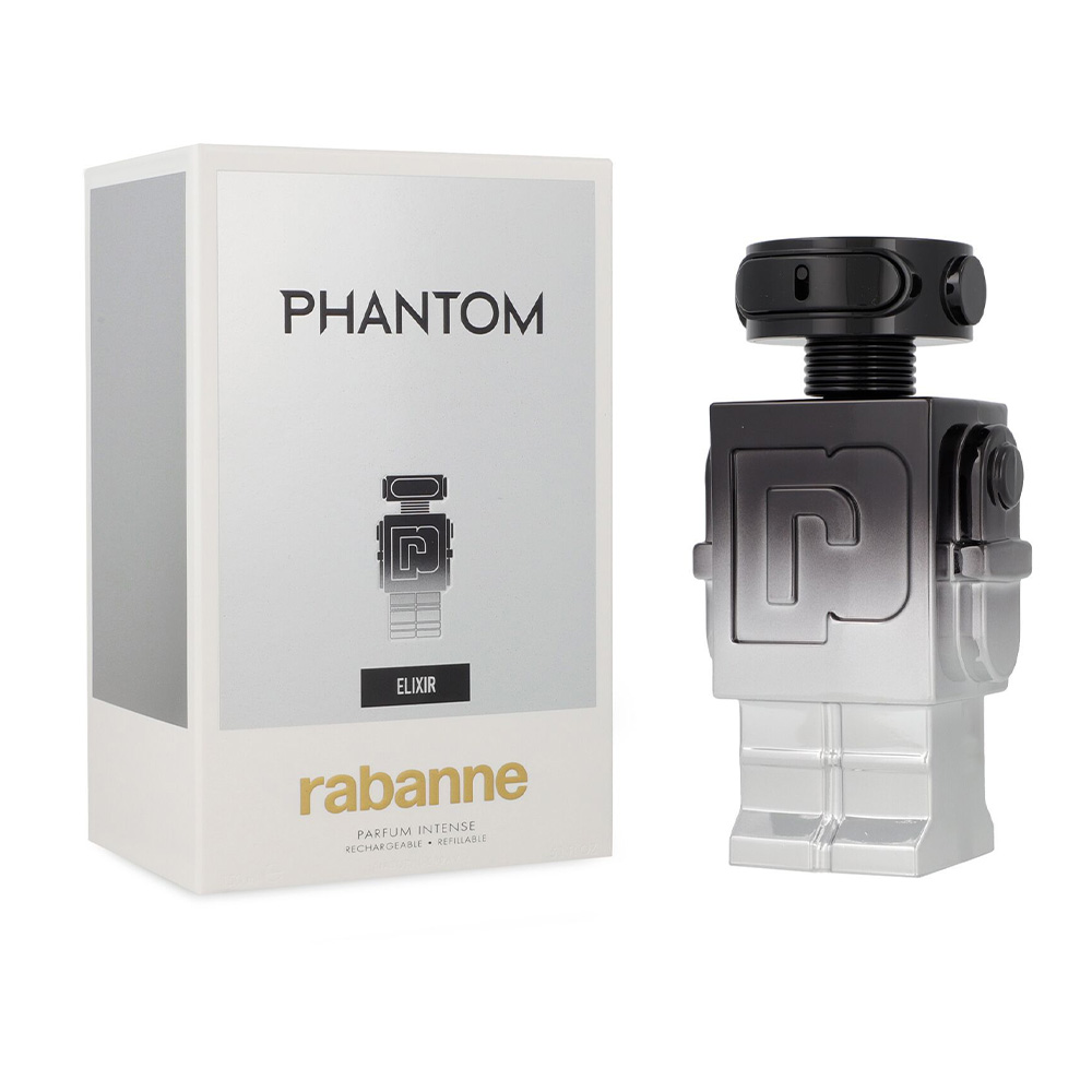 Phantom Elixir de Rabanne. Inspirado en la estimulante energía de una noche de fiesta. Hecho para el noctámbulo del rock and roll, que vive a su propio ritmo y se deleita con el contraste entre las sombras y la luz. Un choque de un fresco acorde marino, un vibrante oud mineral y una cálida vainilla, que celebra la dualidad de la masculinidad Rabanne. El frasco, inspirado en el París nocturno, donde las sombras se encuentran con la luz, se presenta en un intenso degradado brillante de negro a plateado para reflejar el contraste olfativo de su interior. Notas de salida: notas marinas. Notas de corazón: oud vibrante. Notas de fondo: vainas de vainilla.